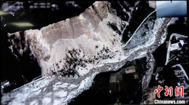 无人机航拍画面显示,此次地震导致山体垮塌、道路受损被埋严重。目前,现场地震救援工作正在紧张进行。