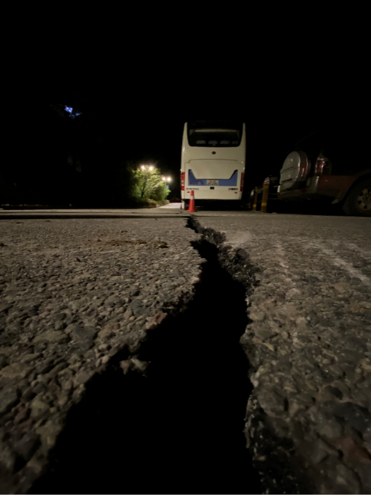 赶往途中,越接近目的地,场面也越是触目惊心,路面塌裂,周围基础设施的毁坏也愈发严重。