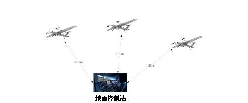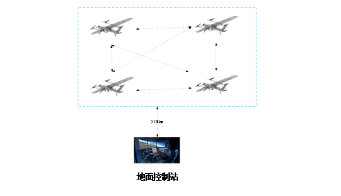无人机的飞行控制信息、吊舱等负载信息通过数据链回传到地面控制站,地面控制站同时可对所有无人机进行实时控制和任务分配。无人机相互之间不进行数据交换,所有数据下发到地面控制站后完成数据处理。