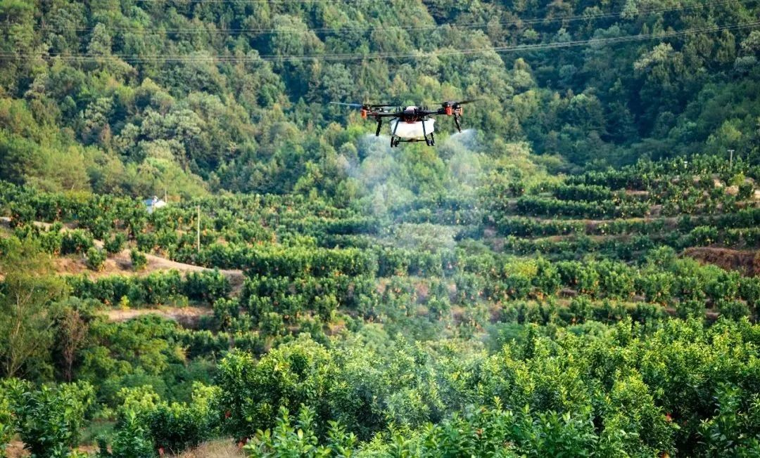 广丰区首次将农业无人机引进马家柚园,并联合上饶市广丰区马家柚产业协会为当地柚农提供植保服务,极飞 P100 农业无人机成为“抗旱保柚”的首发装备,保障今秋丰收。