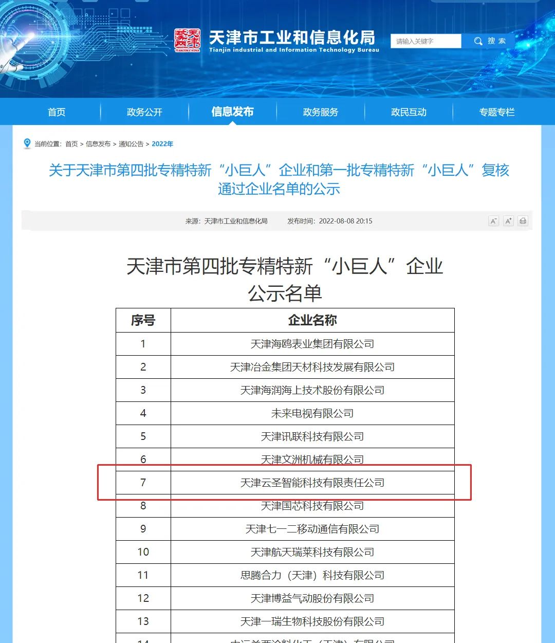 近日,天津市工信局发布了第四批国家级专精特新“小巨人”企业公示名单。其中,天津经开区共有16家企业入选,云圣智能榜上有名。