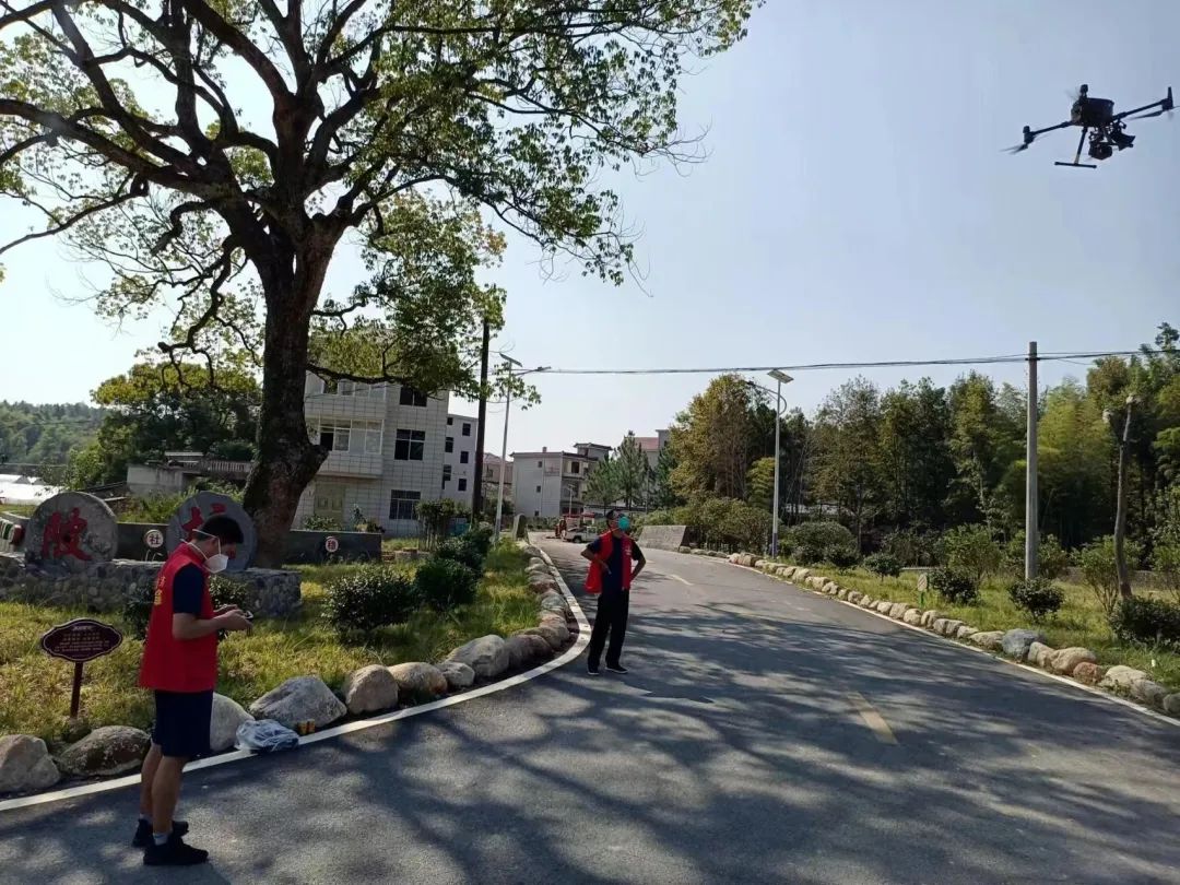 无人机有效提高了疫情防控工作效率,弥补了单一地面人员巡查的盲点和不足。当日,共巡查广播2个社区(东湖社区、八一社区)、4个村委会(漕下村委会、营前村委会、灵岗村委会、大园村委会),期间发现2名群众未遵守疫情防控管理要求,外出菜园刨地,通过无人机挂载广播喇叭对其警示教育,并成功劝返。