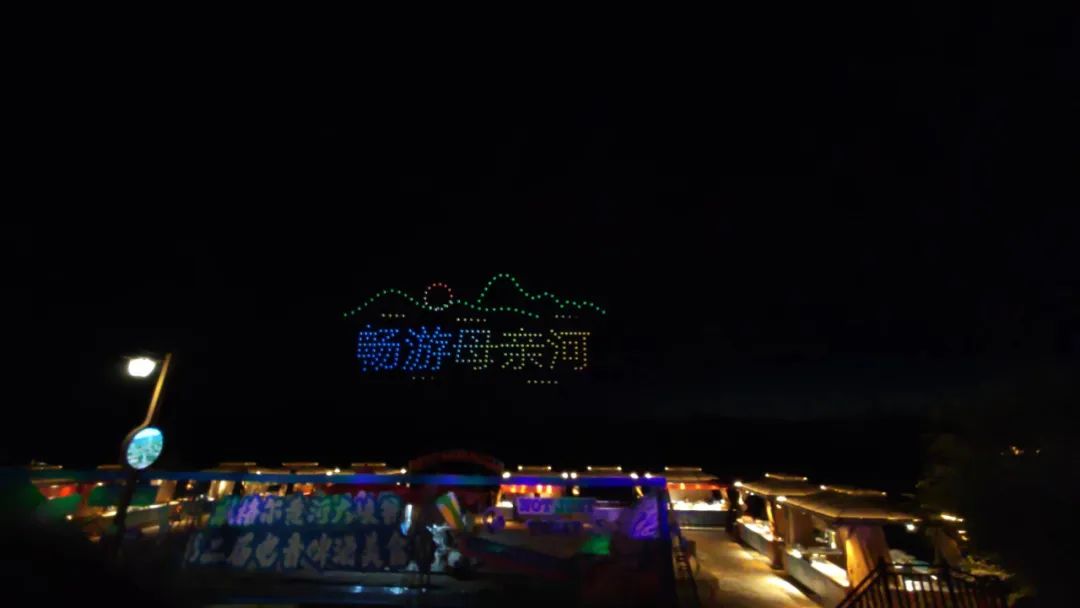 在准格尔黄河大峡谷,数百架无人机开启了一场无人机灯光秀奇幻之旅,时而如萤火虫般组成一个发光的图案,时而汇聚成各种文字,呈现多种3D立体效果……奇思妙想的创意与丰富多彩的变化,令现场游客激动不已,纷纷拿出手机拍摄。