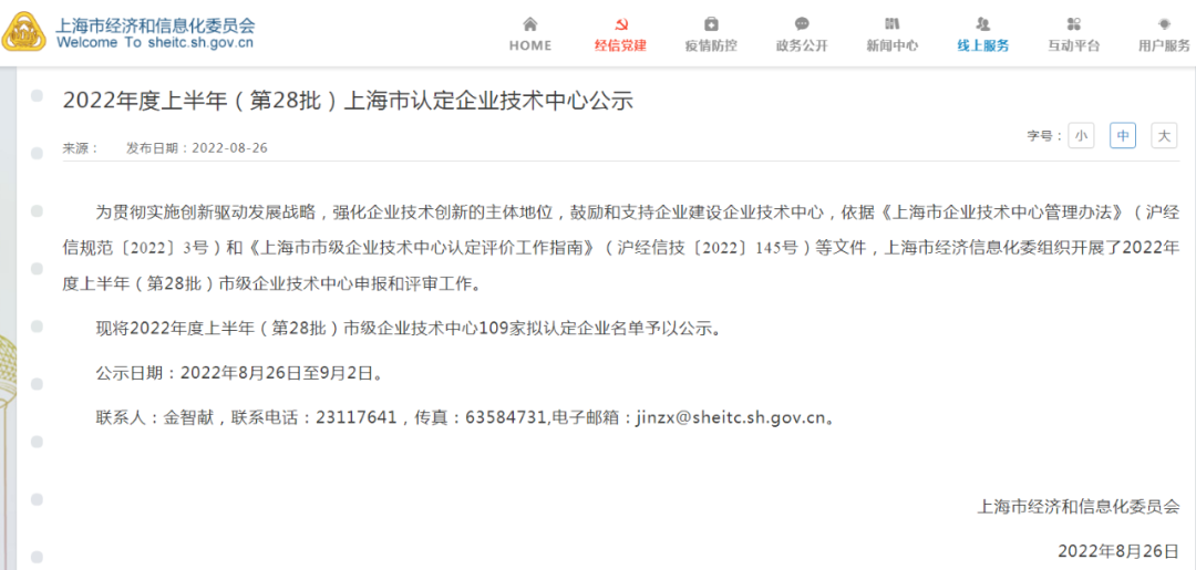 上海市企业技术中心认定系由经信委牵头,为贯彻落实全市加快具有全球影响力的科技创新中心建设、“创新驱动、转型发展”等战略,加强以企业为主体的技术创新体系建设而设立的专项。申报企业需要具备较强科研技术实力、高额科研投入、行业示范导向作用等条件,经过严苛的审核与权威的认定。入选企业作为企业技术创新的主力军,将在行业内起到良好的示范作用,引领产业技术进步和创新能力提升。