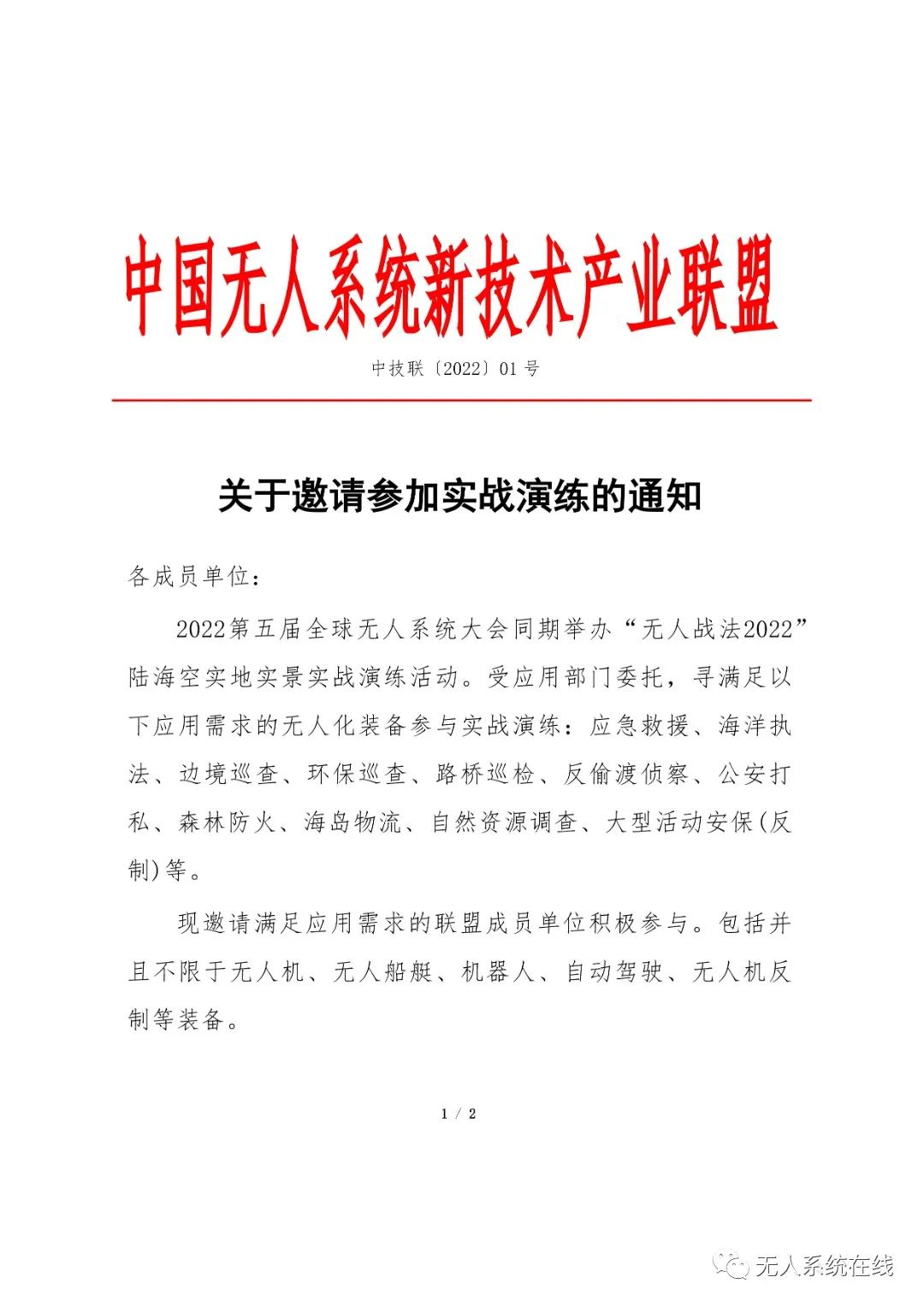 2022第五届全球无人系统大会同期举办“无人战法2022”陆海空实地实景实战演练活动。受应用部门委托,寻满足以下应用需求的无人化装备参与实战演练:应急救援、海洋执法、边境巡查、环保巡查、路桥巡检、反偷渡侦察、公安打私、森林防火、海岛物流、自然资源调查、大型活动安保(反制)等。