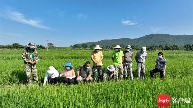 技术人员指导农户防治水稻病虫害。昌江融媒体中心供图