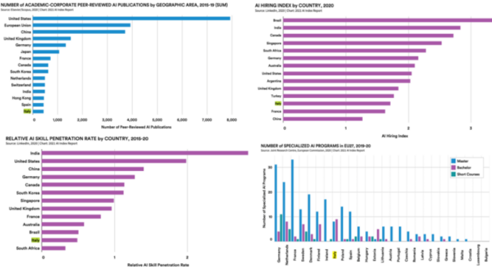 在这种情况下,意大利落后了,如下图所示,摘自《2021年人工智能指数报告》。