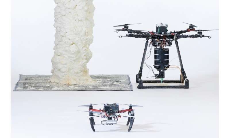 机队中的无人机统称为空中增材制造 (Aerial-AM),它们从一个单一的蓝图协同工作,随时调整他们的技术。它们在飞行时是完全自主的,但由人工控制员监控,该控制员根据无人机提供的信息检查进展并在必要时进行干预。