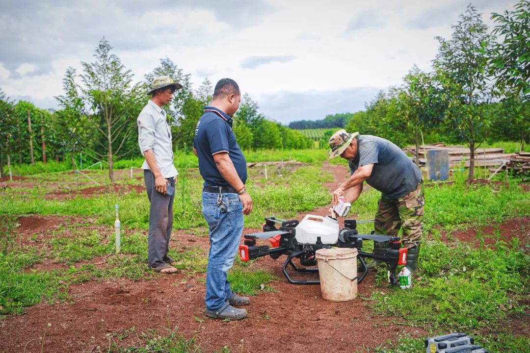 这个胡椒园的所有者是 65 岁的农民马布,近日他聘请了当地的无人机植保服务队为其 20 多亩胡椒进行病虫害防治,精准高效又安全的防治效果让马布很满意。被誉为“香料之王”的胡椒,具有广泛的医用和食用功效。它是一种攀援藤本作物,通常攀附在 4 米高的木桩向上延伸,导致当它长到一定高度时,顶端的芽叶很难通过传统人工的方式进行植保。以往,为了照料好这片胡椒田,马布需要付出大量时间和精力、雇佣多名工人,导致种植成本居高不下,在工人进行传统植保作业时,还要担心他们的人身安全。因此,很多种植户不敢轻易尝试扩大规模,有的种植户索性不加管理,任由地里的胡椒自由生长。