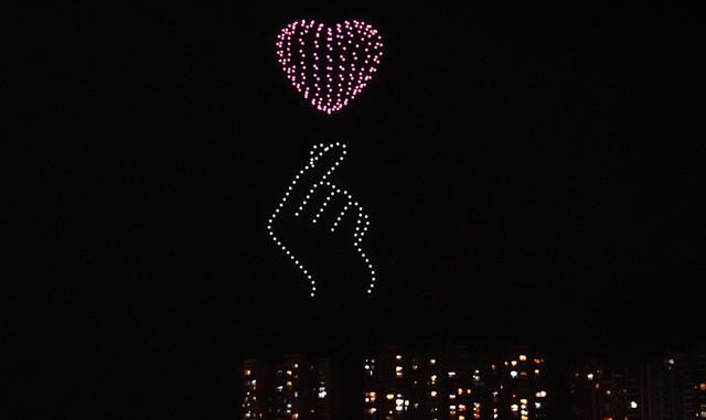 金湖上空的无人机灯光秀。李维奇摄