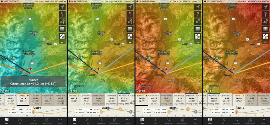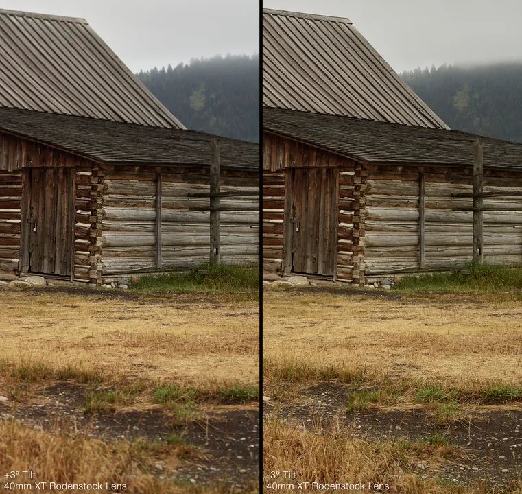另一边,右侧图像的效果,和John Moulton Homestead效果一样,从前景到背景画面都是完全清晰,光圈相同,几乎没有衍射,但它是通过将镜头向下俯仰朝向大地。