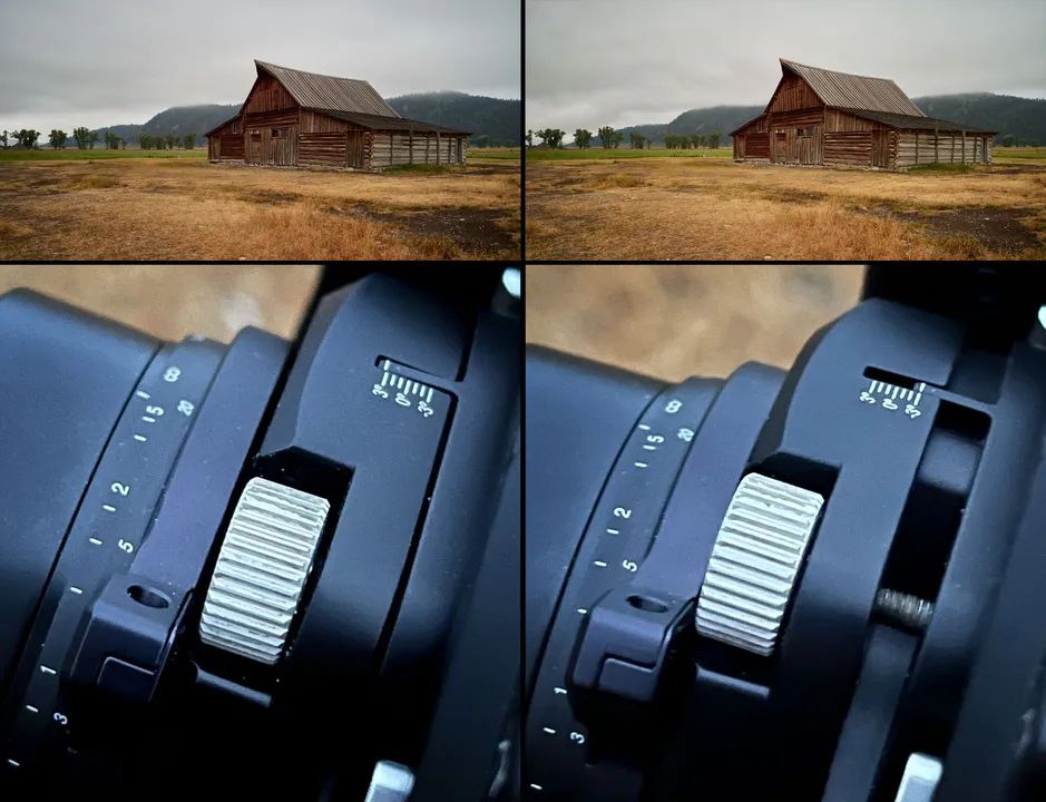 乍一眼看,这只是一张使用了f/11拍摄的普通谷仓照片,距离我们很近,背景是大提顿和它旁边的风景,都有在对焦上。