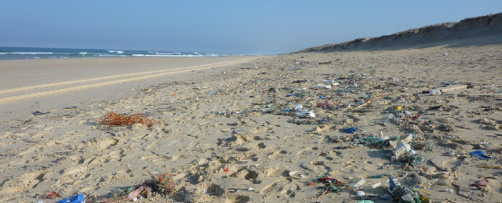 在人类活动领域,烟头、塑料瓶、包装袋等垃圾物很容易被“遗弃”在海岸边上,比如沙滩、泥滩等地。除了这种直接造成的海岸污染,间接的污染也能使海岸受到“威胁”。