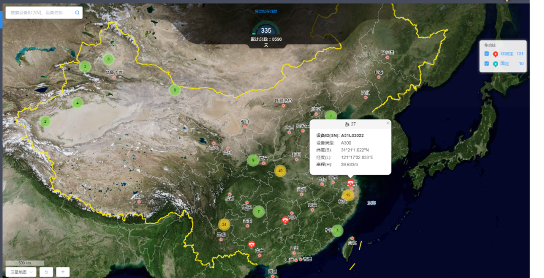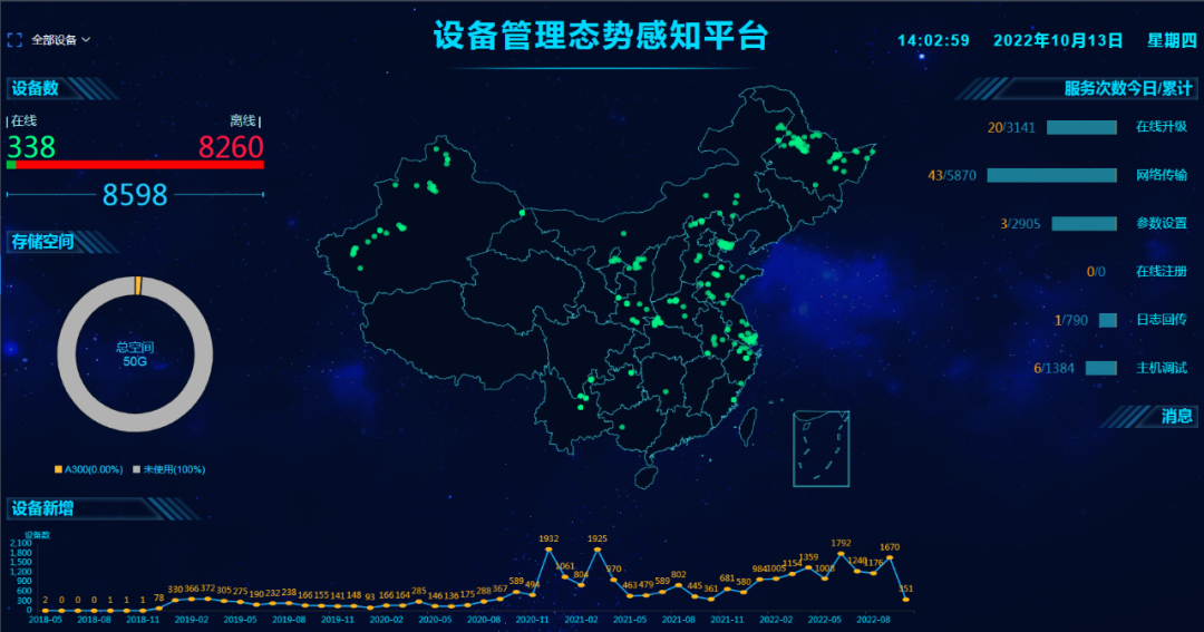 实时展现设备的分布情况、设备状态、设备信息