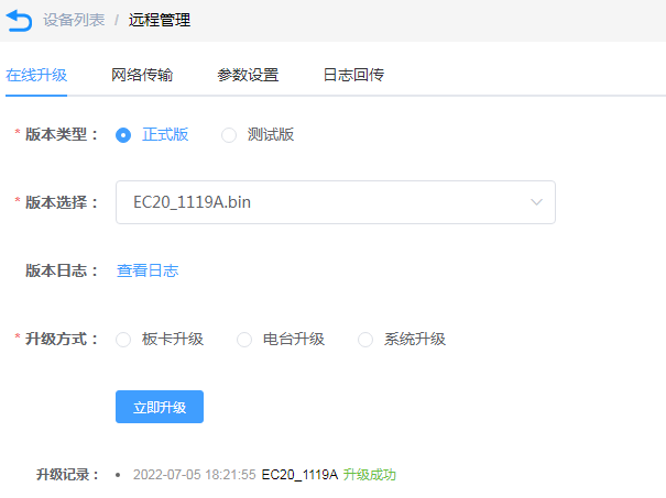 远程调试设备,实时数据透传、设备本地日志文件回传等多种手段支持对设备系统以及板卡等各模块的远故障进行远程分析。