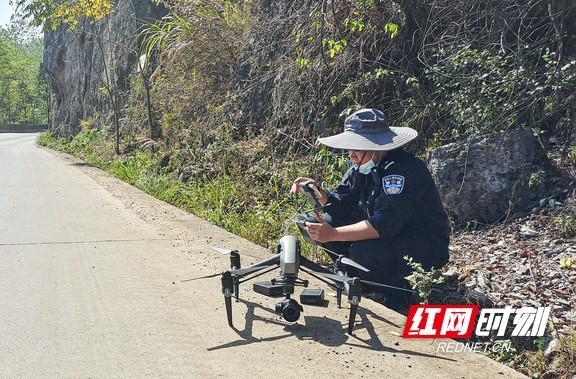 在民乐镇,花垣县公安局民警调试无人机。