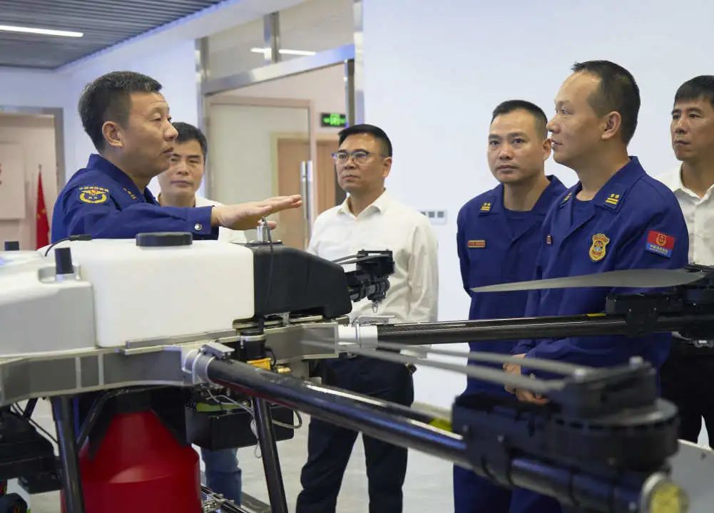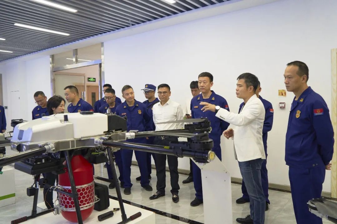 10月15日上午,温州市消防局局长罗军、副局长李宿龙、潘长聪、作战训练处长、信息处处长、后勤装备处处长、龙湾区常务副区长李丹、应急局局长、投资促进中心、消防救援大队等单位主要负责人到温州黑蜻蜓无人机科技有限公司做消防灭火无人机相关考察和应用指导。
