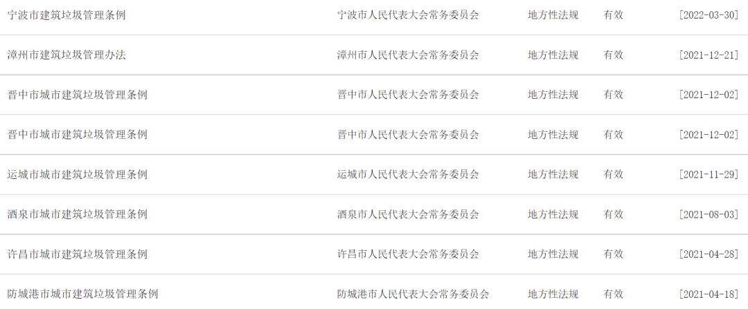 在中央政策文件的指导下,多地也针对建筑垃圾整治出台了相关政策文件,强化决心,促进建筑垃圾管理处置和资源化利用水平的提升。
