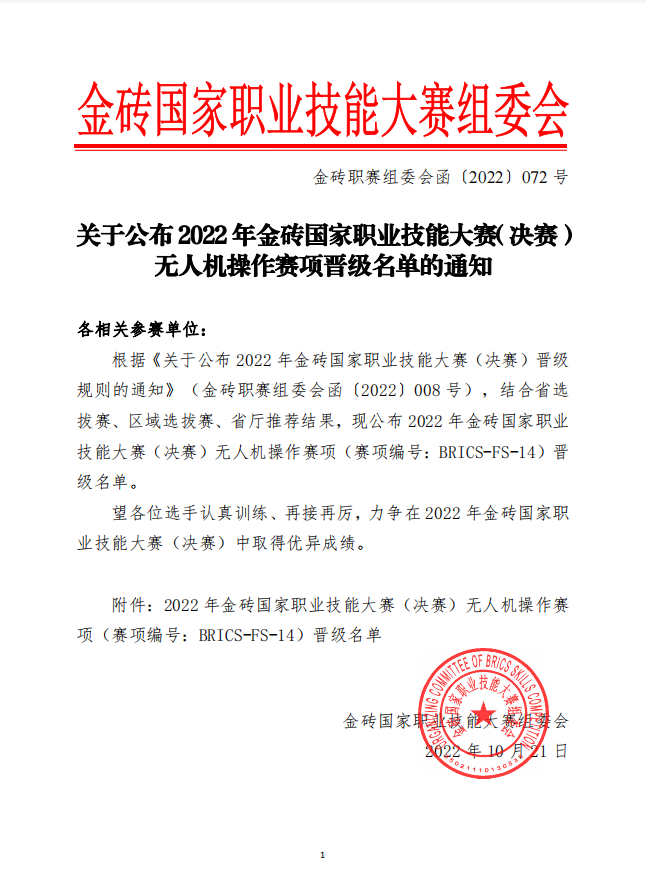 2022年金砖国家职业技能大赛(决赛)“无人机操作”赛项即将开赛