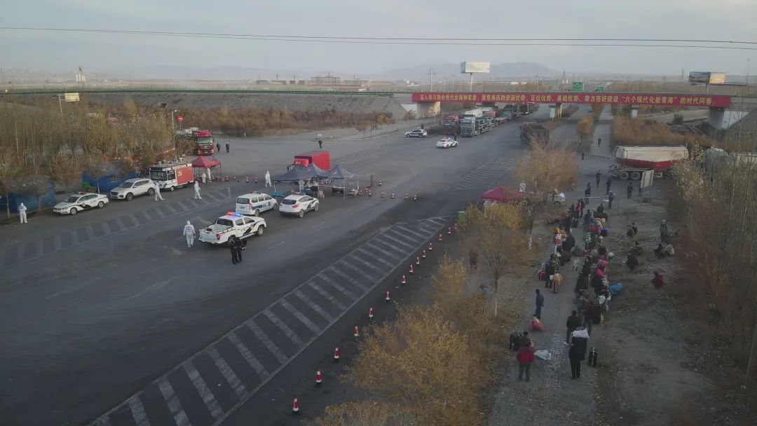 “请大家积极配合疫情防控工作,保持一米以上间隔距离,戴口罩、勤消毒、不聚集……”上百米的高空中传来无人机喊话的声音,卡口做核酸检测和聚集的群众看到无人机、听到提醒后都自觉地保持了间隔距离。