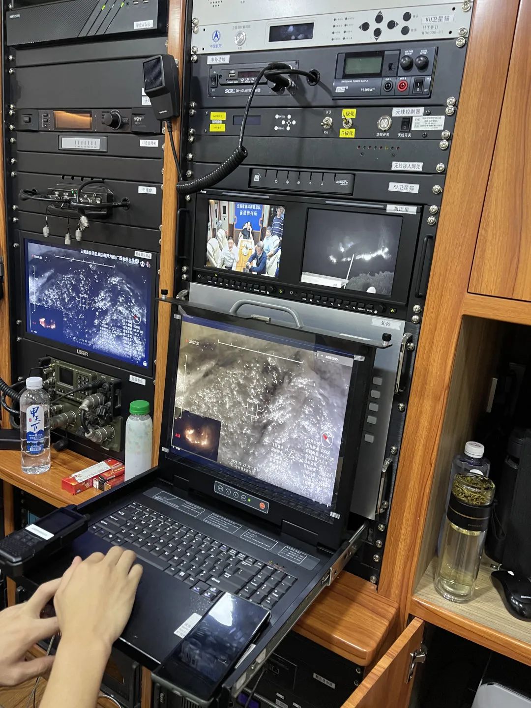 总指挥中心内,火场画面实时回传,供指挥小组参考