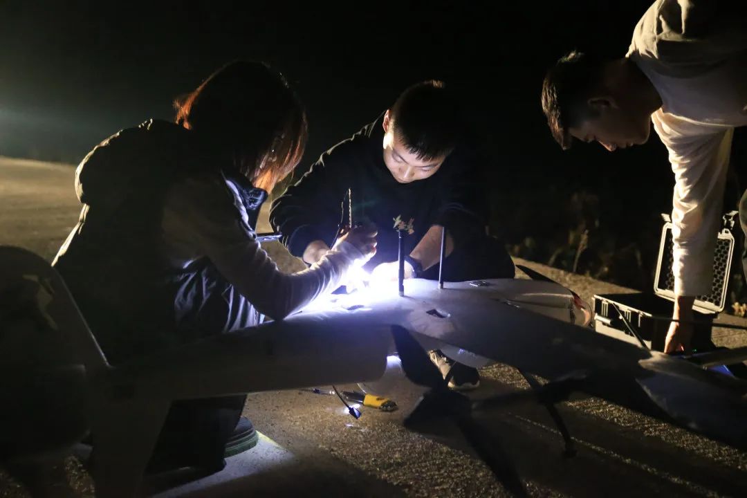 工作小组连夜抵达火场后迅速组装飞机准备飞行