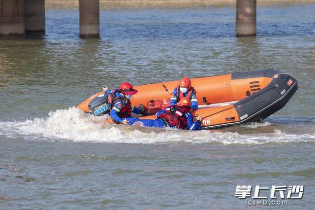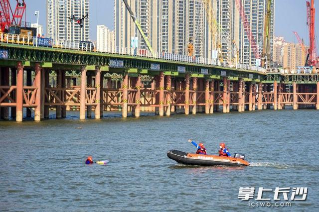 此次演练由市应急办、长沙交通集团主办,旨在落实企业安全生产主体责任,增强相关人员在突发事故面前自救、急救的能力。演练模拟3名栈桥施工维护人员在日常检修时不慎掉落水中,大声呼喊救命。“落水人员”被湍流冲入湘江河道,情况十分危急。