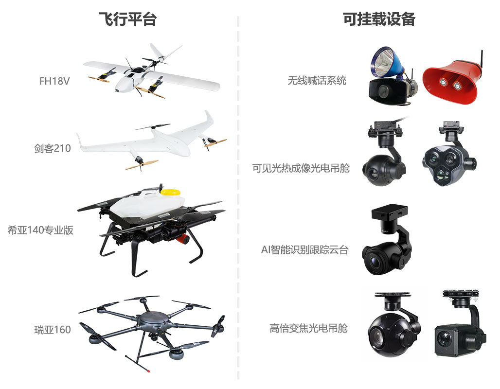 公司专注于无人机行业应用技术研究,为测绘、电力巡线、石油巡检、公安安保、消防灭火、环境监测、应急救灾等行业应用提供完善的无人机解决方案。产品包括各种工业级固定翼、多旋翼无人机及其相关吊舱、长距离数据链和视频链路、地面站系统和动力系统等。