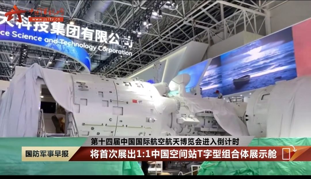 △首次展出1:1中国空间站T字型组合体展示舱 图源/中国军视网