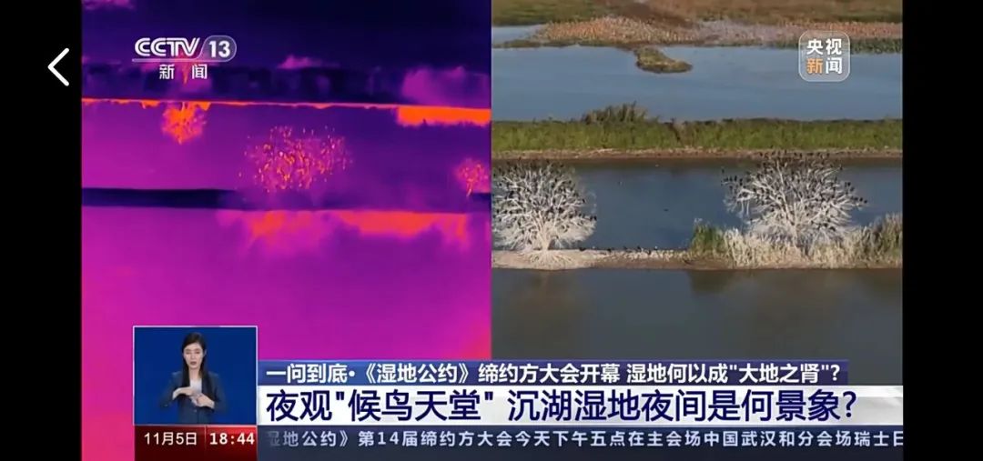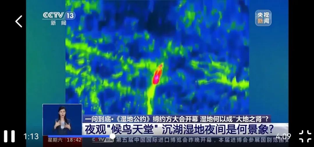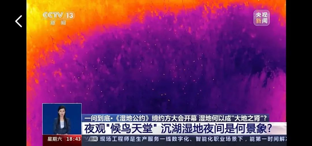 央视聚焦世界湿地大会,进行了《一问到底·夜观“候鸟天堂”沉湖湿地夜间是何景象?》相关报道。据悉,本次报道中的夜间候鸟红外监测画面,全部由普宙科技的S400无人机搭载1K红外云台相机协助拍摄完成。