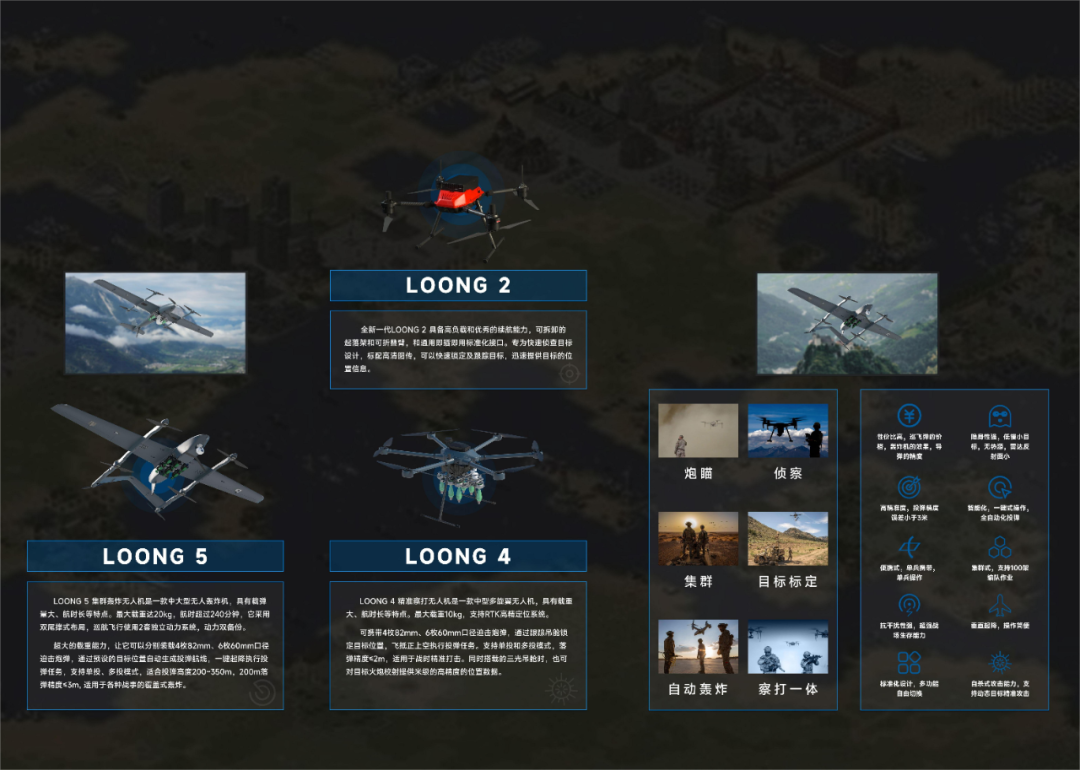 科比特航空助力无人机企业携带LOONG2侦察无人机、LOONG5集群轰炸无人机、LOONG4精准察打无人机等产品惊艳亮相珠海国际航展。