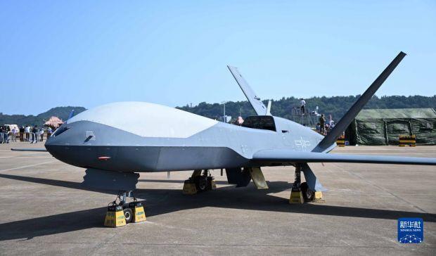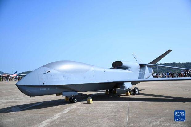 这是航展上展出的WJ-700高空高速侦察打击一体无人机系统(11月9日摄)。 在珠海举行的第十四届中国航展上,一批先进国产无人机和反无人机装备集中亮相。 新华社记者 邓华 摄