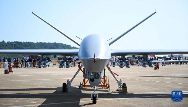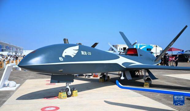 这是航展上展出的翼龙-10B无人机(11月9日摄)。 在珠海举行的第十四届中国航展上,一批先进国产无人机和反无人机装备集中亮相。 新华社记者 邓华 摄