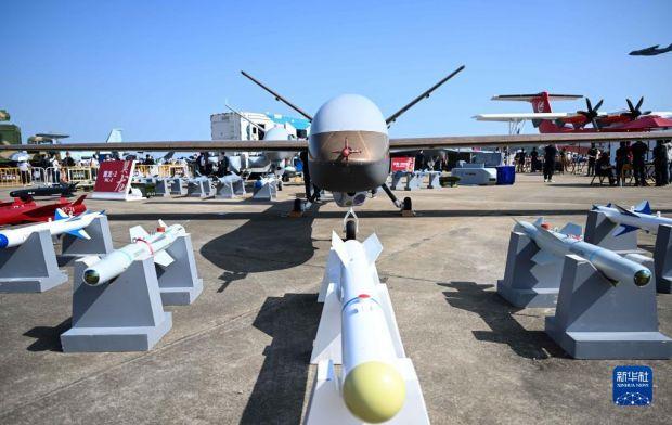 这是航展上展出的翼龙-1E无人机(11月9日摄)。 在珠海举行的第十四届中国航展上,一批先进国产无人机和反无人机装备集中亮相。 新华社记者 邓华 摄