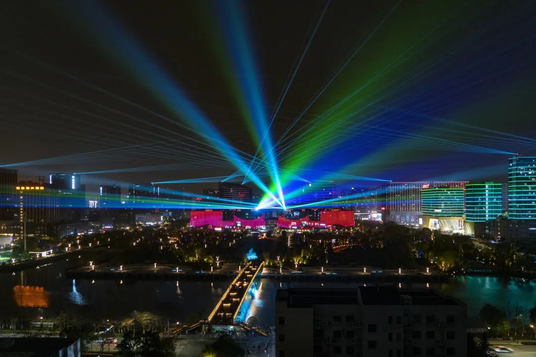 运河灯光秀以运河为带,以红船为魂,用绚烂的灯光渲染沿岸绿地,点燃火树银花,整个运河新区的灯光交相辉映,将展开一幅灯火璀璨的立体画卷。整个运河建筑群如一艘巨大的红船行驶在运河之上,驶向新的征程。