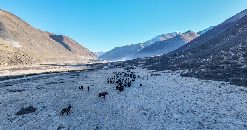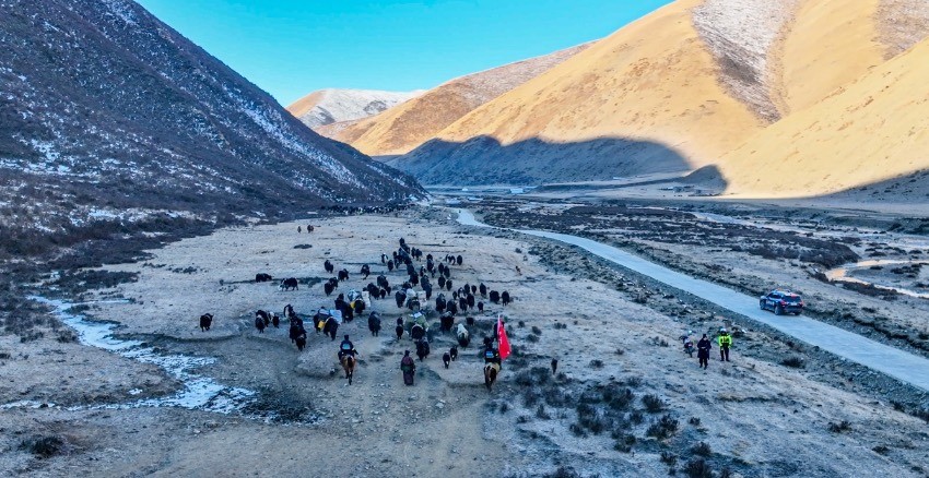当下,正是高原牧民群众牦牛迁徙冬季牧场的时节。石渠县是牦牛资源大县,牦牛常年存栏量在35万头以上。牦牛产业是石渠县特色产业,更是惠及广大牧民群众的民生产业,牧民们世世代代在长期逐水草而居的生活中,形成了不同季节利用不同高度草场的迁徙游牧方式。依照牧草生长周期,有序地为牲畜转移草场。