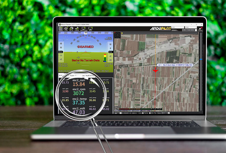 实时获取动力系统数据(电机电压、电流、转速,ESC温度)。