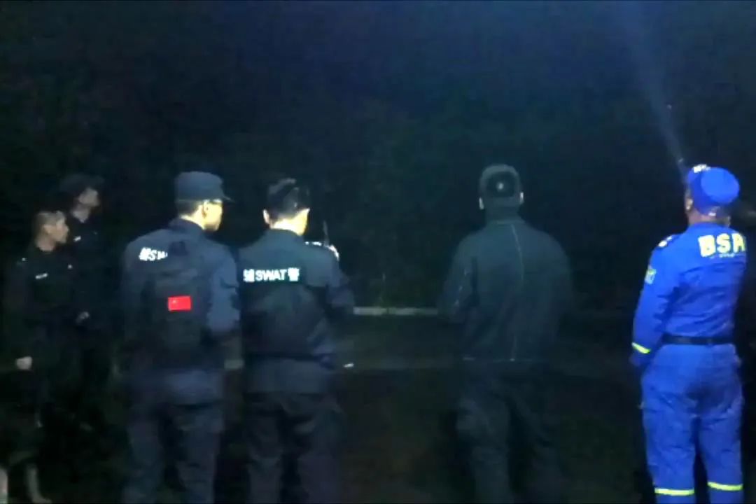 “无人机发现一可疑热源在起飞点东南方300余米的山林间活动。”22时,救援有了进展,特警队员立即指引警犬及地面搜救人员赶往热源方向搜寻,并开启照明设备进行空中引导。