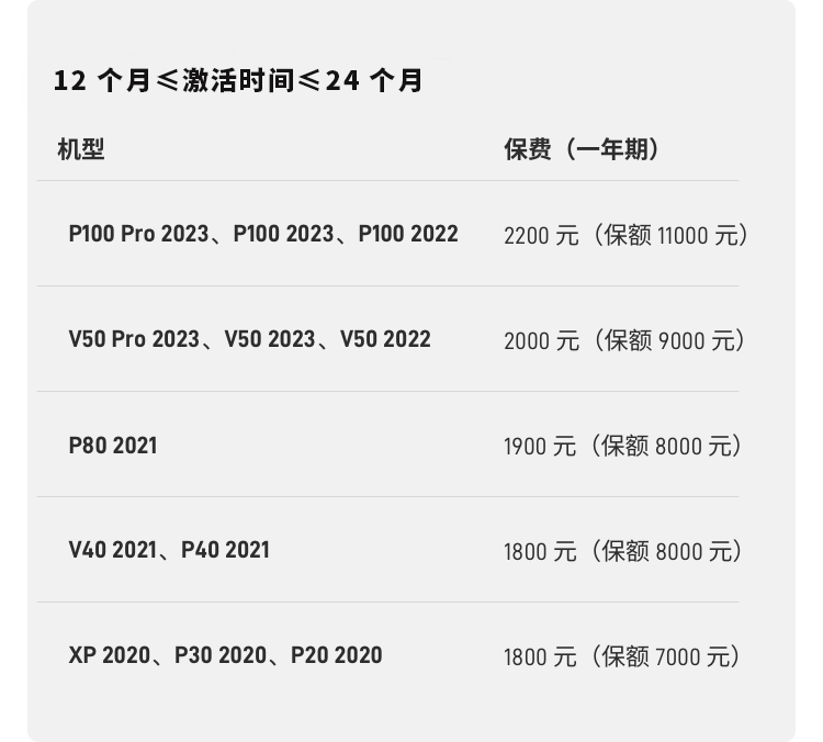 2. 激活时间超过 24 个月的所有机型均不支持购买安心保。