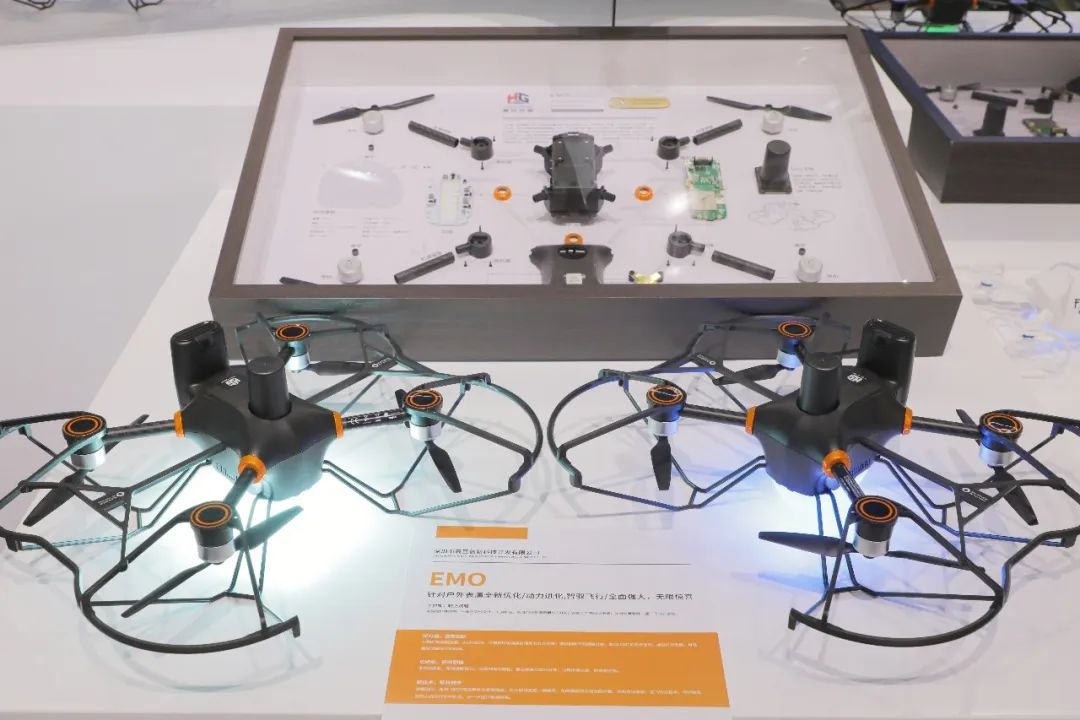 EMO是一款针对室外表演全新设计的无人机其中续航、重量、飞行安全、灯光效果、飞行定位等得到全面的链路优化。同时为提高飞机续航能力,可加配充电底座,底坐同样配置灯光表演系统,可以与飞机一起展现全球独创的地空灯光互动表演。