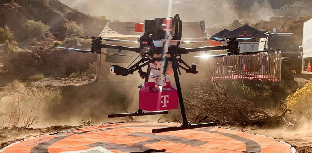 无人机网(www.youuav.com)11月23日报道,据《sUAS新闻》消息,当在犹他州维珍这样偏远而美丽的地区,有时很难获得可靠的电话信号。那么,T-Mobile和无人机物流和交付公司DroneUp是如何设法将新鲜的红牛罐头送到负责创建他们将骑行的路线的Rampage运动员手中的?