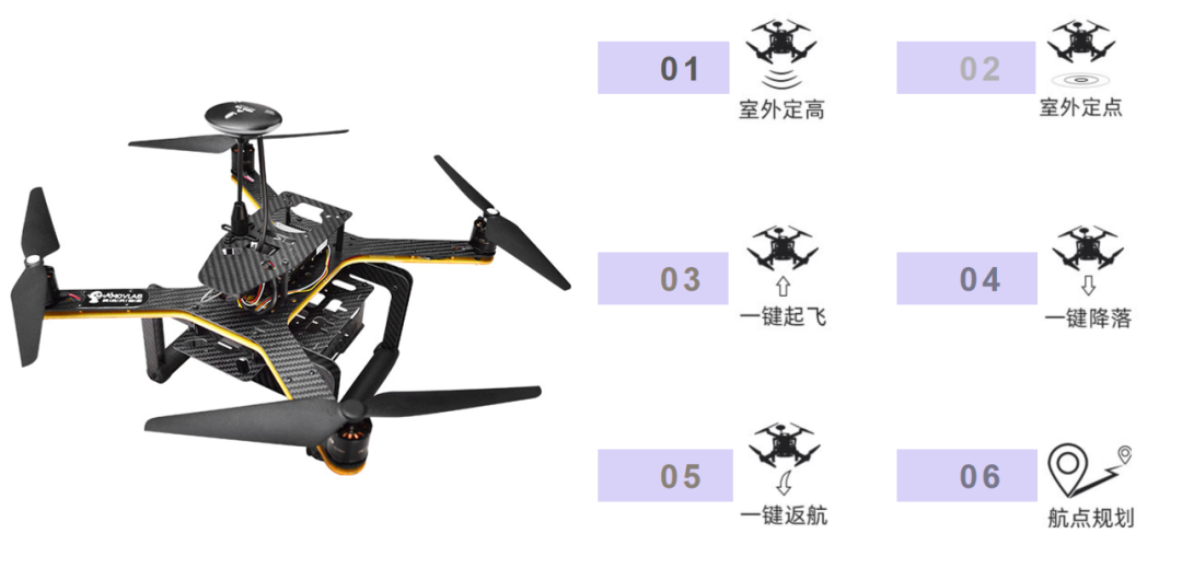 F200是目前基于FMT开源自驾仪项目开发的第一款无人机产品,支持室外定高定点、一键起飞、一键降落、一键返航、航点规划等功能。后续添加光流、激光传感器的导航支持后,可支持室内无GPS的定点功能。