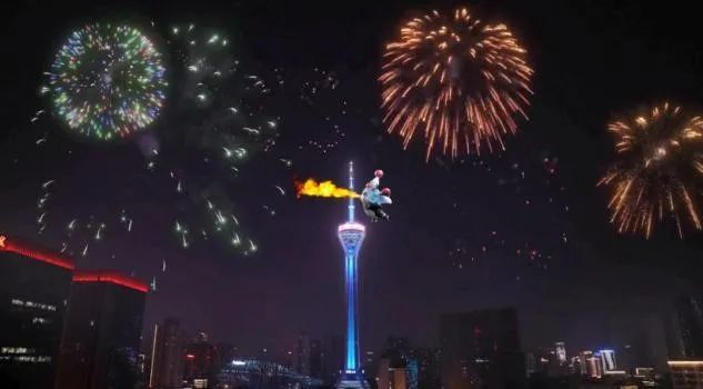 AR灯光秀,能够让人感觉所处的环境中增加了一些并不存在的人工制造的实体,这实际上是采用特殊的AR视频制作取代真实存在的灯光效果,其中还利用CGI数字合成技术,让人有一种科幻大片的既视感。