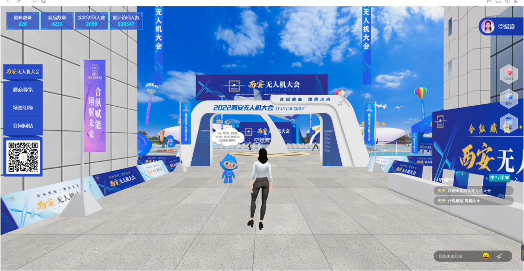 本次大会首次引进元宇宙概念,运用科技手段打造实景复刻的机场导览大厅、企业品牌展示中心、线上直播中心、元宇宙会议中心以及游戏中心等组成的元宇宙数字线上展厅,将产品展示、商贸洽谈、会务服务融为一体,为展商以及观众提供线上互动平台。观众可创建生动形象的虚拟人物代替自己逛展,也可在智慧逛展小助理“天天”的带领下参展参会,高效逼真的还原了线下逛展真实场景,会期通过生动有趣的参会形式,线上展厅访问量近百万人次。