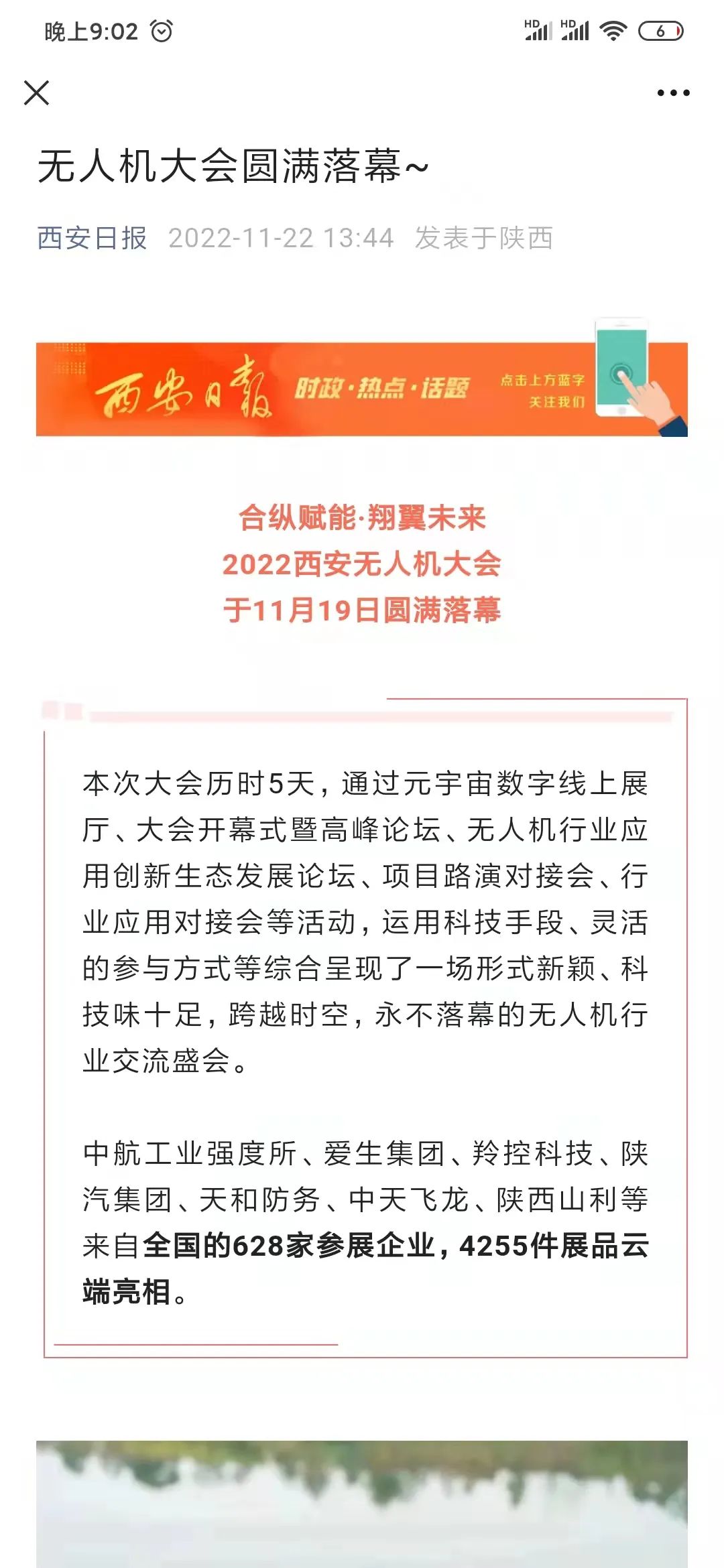 2022西安无人机大会通过“云展示、云直播、云会议、云撮合、云上购物节”等多种创新活动形式,吸引了中国新闻网、科技中国、中国企业快讯、新经济网、陕西新闻、西部网、西安新闻网等央级、省级、市级媒体争相报道,活动相关内容得到了凤凰网科技频道、腾讯新闻、网易新闻、飞行邦、通航圈、航空驿站、临云行等主流媒体及行业媒体的广泛传播,官方微信、微博、抖音、哔哩哔哩、今日头条等自媒体平台互联互通,会期媒体累计曝光量逾1000万次。
