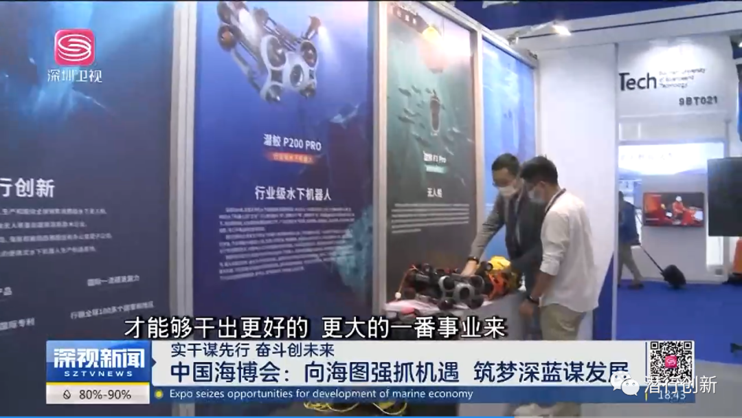 潜行创新营销总监陈戎铀在展会上接受了深圳卫视的采访。他认为,水下机器人或智能硬件是一个万亿元级的产业,但目前产品还不能满足市场需求;同时,得益于国内完整成熟的供应链体系,国产品牌比国外厂商产品性价比要高很多,使得公司产品作为民族品牌能够扬帆出海,在全球市场上占有一席之地。