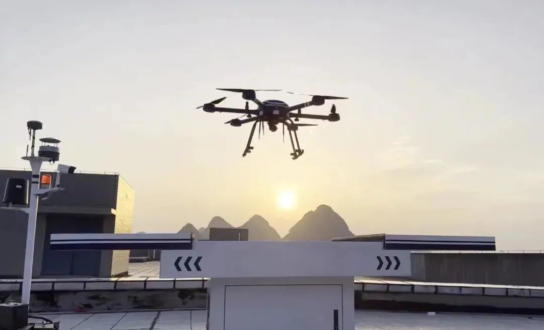 在桂林,环保人员使用蜂巢航宇SU-30智能无人机场,无人平台搭载环境监测设备对附近10km半径区域进行环境监测,从宏观上观测土壤、植被、水域和空气状况,并对水质、气体进行采样为环境保护提供决策依据。