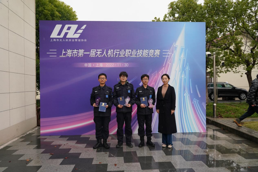 此前,协会于10月下旬完成本市首批无人机驾驶员(安防)三级职业技能等级认定工作,来自上海新世纪科技有限公司的蒋旭洲(第一名)、上海玄风航空科技有限公司的秦松(第二名)、上海崇明保安服务有限公司苏劲松(第三名)分别荣获个人总成绩前三名,上海市职业技能鉴定中心副主任高占峰为获奖选手颁奖并合影。