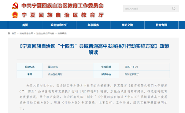 2.《宁夏回族自治区“十四五”县域普通高中发展提升行动实施方案》