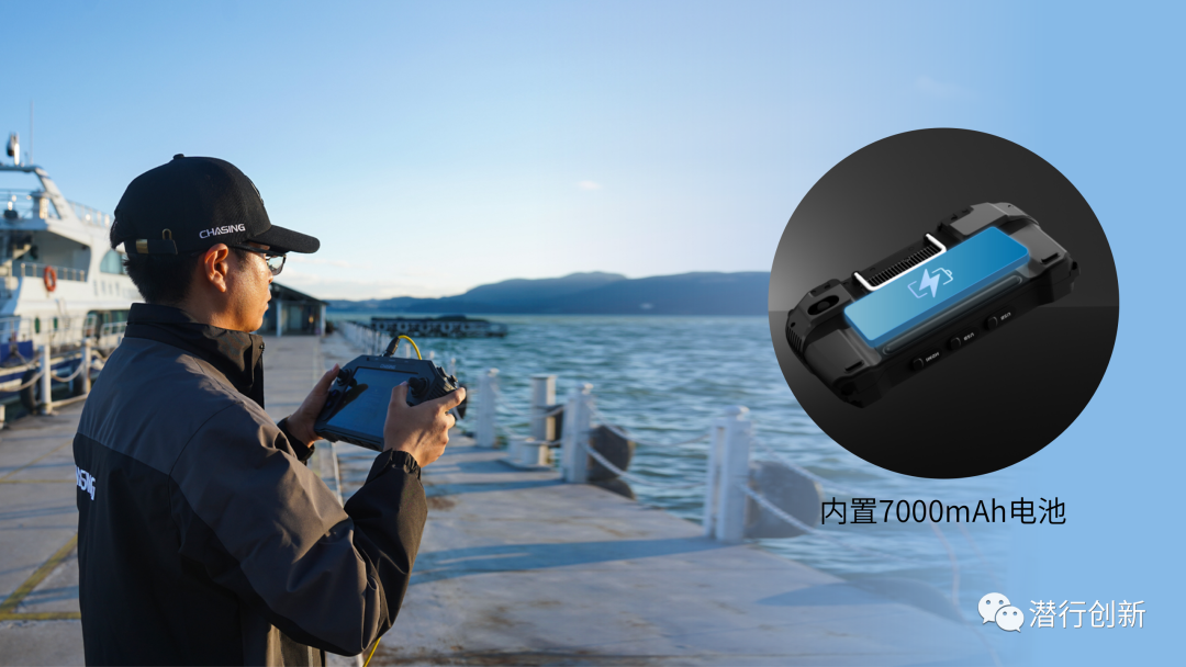 潜行防水带屏遥控器,内置7000mAh电池,在常温(20℃-25℃)满负荷状态下连续工作约5小时。